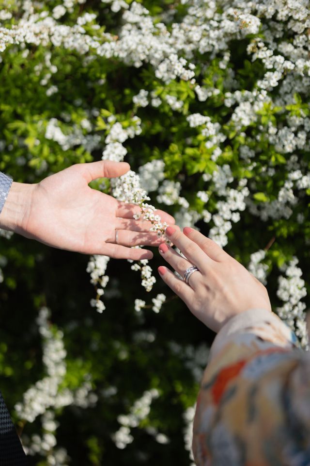 婚約指輪は飽きのこない王道のデザインで、ダイヤの品質にこだわりました。結婚指輪は、日常使いできるけど輝きが綺麗なものを選びました。ハーフエタニティーなので、サイズ変更も可能です。単体でも、セットで付けても指を綺麗に見せられます。