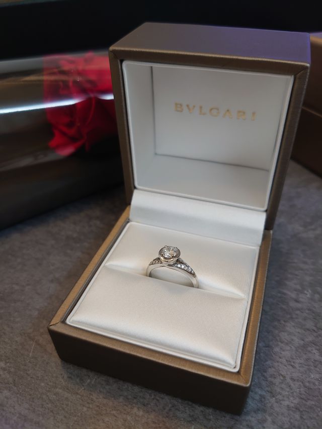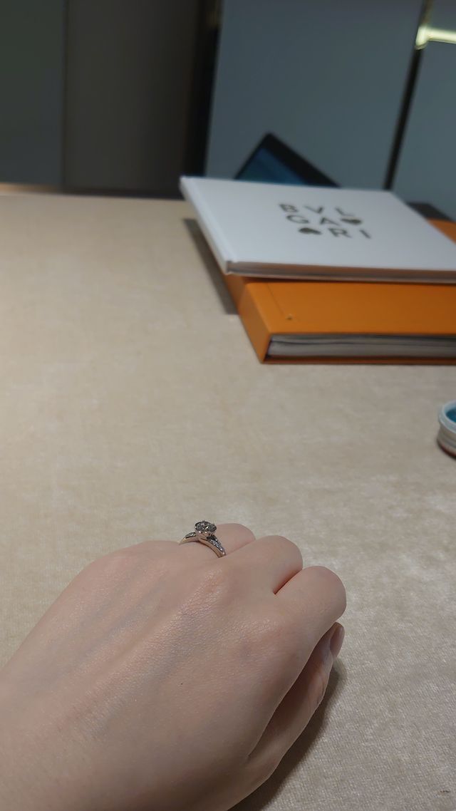 これの他にもう一つシンプルな指輪と迷いましたが、折角の婚約指輪だったので華やかなこちらのデザインにしました。
