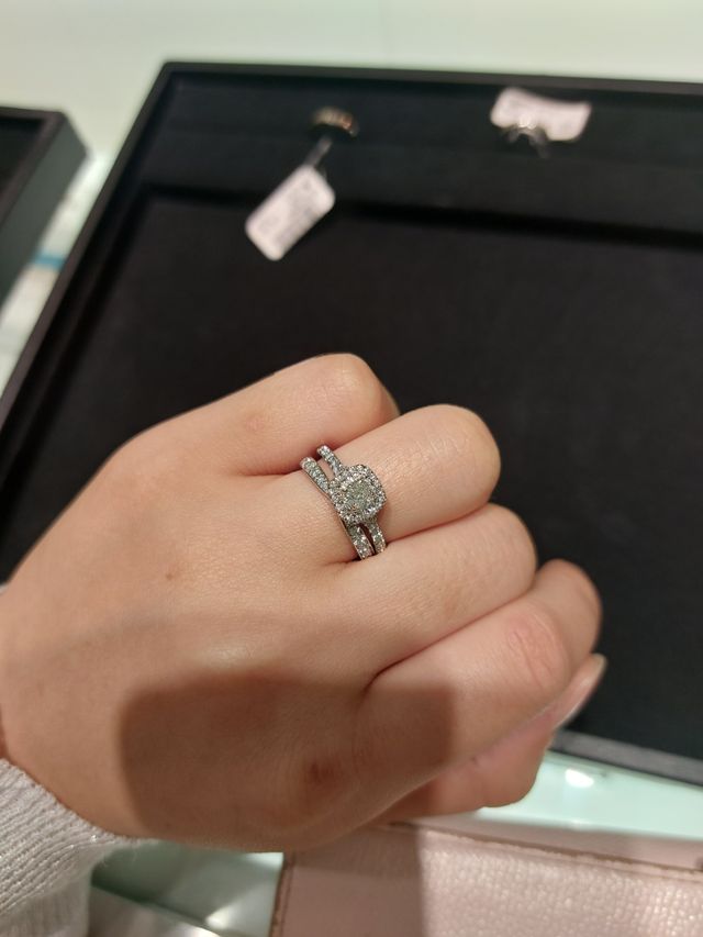 派手なものが好きなのでこちらの指輪は見た瞬間から気持ちが高まりました。結婚指輪と婚約指輪のピッタリハマる感じがとても素敵です。つけてる間ずっとうっとりしていてとても幸せな気持ちになりました。着け心地もよくて違和感もありませんでした。
