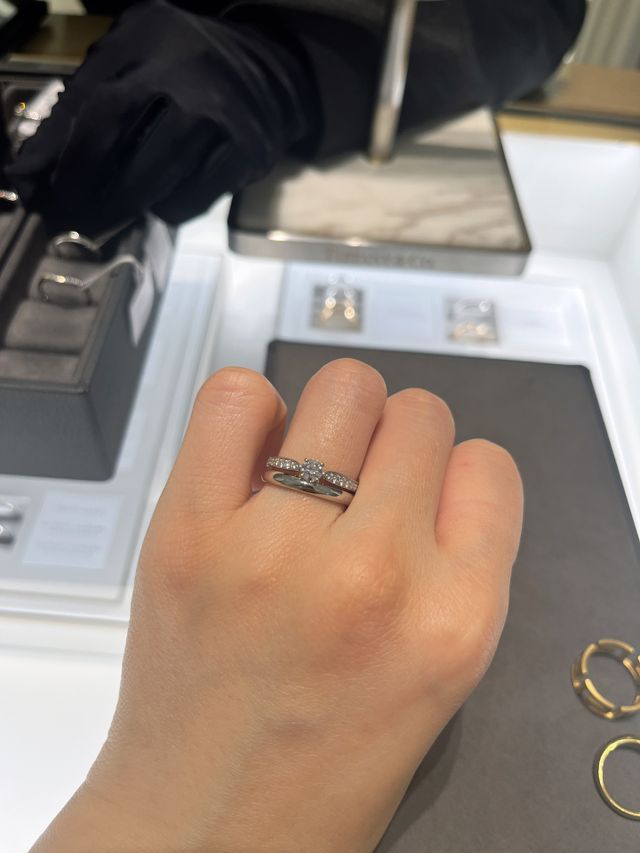 今回の指輪探しで一番最初に店舗を訪れたのがティファニーでしたが、1社目がティファニーで本当に良かったね、と夫婦揃って話しています。それくらい接客の感じも良かったですし、まだ指輪を見始めた直後で知識もなかった私たちにも丁寧に接していただきました。その後何社か伺いましたが、ティファニーが一番「結婚」や「婚約」を特別に想って演出してくださった印象です。指輪をいくつか見せていただいた際にも、「では旦那様が奥様の薬指にはめて差し上げてください」など、ちょっぴり照れますがわくわくする演出もしていただき、本当に結婚するんだな、とやっと実感が持てた気がしました。