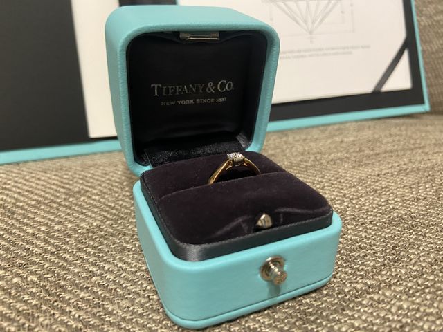 シンプルなデザインで流行り廃りないと思います。さすがティファニーといった感じでダイヤモンドはとても綺麗でした。ダイヤモンドは小さくても存在感あります。イエべ秋なのもありピンクゴールドの指輪にしたところもポイントです。