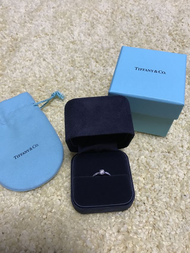 両サイドに小さいダイヤが入っていてどこから見てもキラキラです。プロポーズ前から「この指輪がいい」と彼におねだりしていたので、一緒にティファニーに見に行ったときには、選択権は与えられませんでした。笑