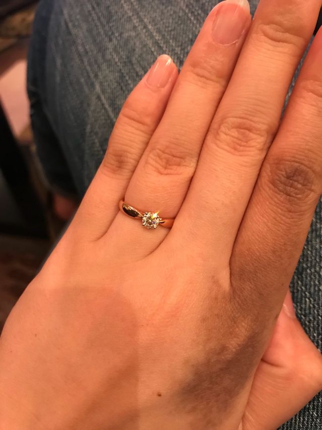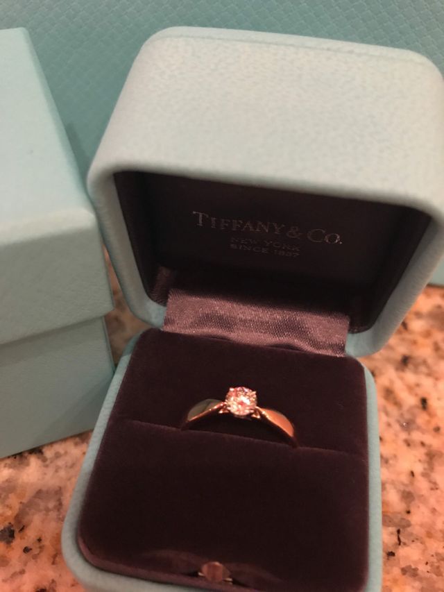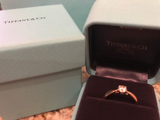 ティファニーは憧れで、わたしは結婚指輪より特別感のある婚約指輪で欲しかったので嬉しかったです。ダイヤにあまり興味のなかったわたしですが、質が良いのか薄暗いところでも光りを取り込み輝くダイヤはずっと見ていられます。