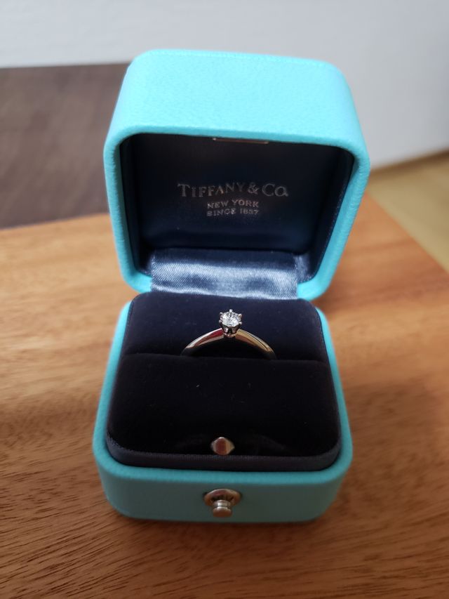 彼が買ってくれたので、私は選んでいません(笑)でもダイヤが輝いて、The!婚約指輪という感じのデザインが気に入っています。リングにダイヤがついて完成した状態のものからダイヤで選んで、サイズはあとで直しに行くつもりだったようですが、なんとぴったりだったので喜んでいました。
