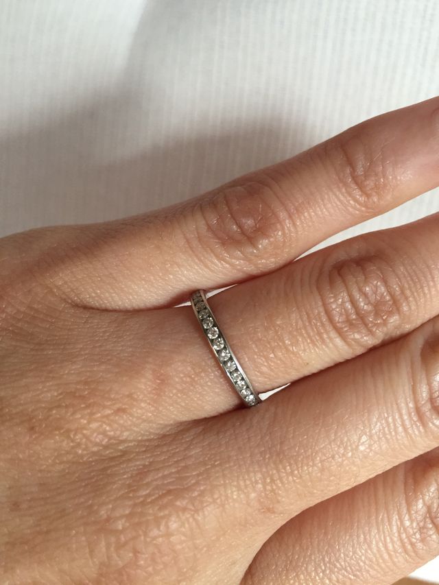 購入した指輪は、リング1周ダイヤがあるフルエターナルリングで一見豪華ですが、幅が狭いので控えめでもあり一目ぼれしました。