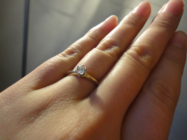 もともと身に着けるアクセサリーはゴールドのものが多かったので、相性を考えてゴールドの婚約指輪にしました。