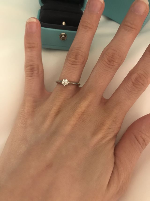 婚約指輪はティファニーにしたいという憧れがあり、そのまま購入に至りました。その中でもティファニーセッティングは王道中の王道で、今後歳を重ねても飽きずに付けられる指輪だと思います。また、デザインがシンプルなので、結婚指輪との重ね付けもしやすいと感じています。