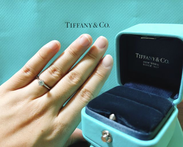 ティファニーセッティングの美しい横顔に一目惚れして即決でした。