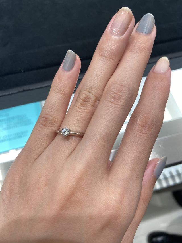 やはり王道と憧れのティファニーってことで、周りの方もティファニーを選ぶ方がとても多かったです。ブランド力もあるので、持ってるだけでとても気分が上がります。あの青い箱に指輪が入ってるのがとても良いですね。