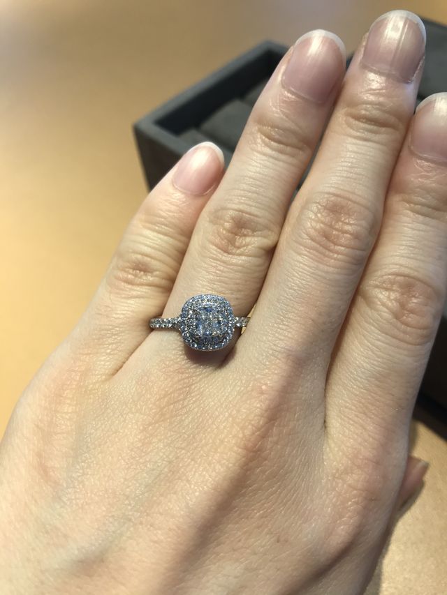 海外のマダムのように、白髪になってもつけられるような、長年愛せる指輪を探していました。デザインは、丸ではなく四角のものが良かったのでティファニーのデザインがドンピシャでした。一粒ダイヤを囲む細かいダイヤのおかげで大変ゴージャスなイメージです。