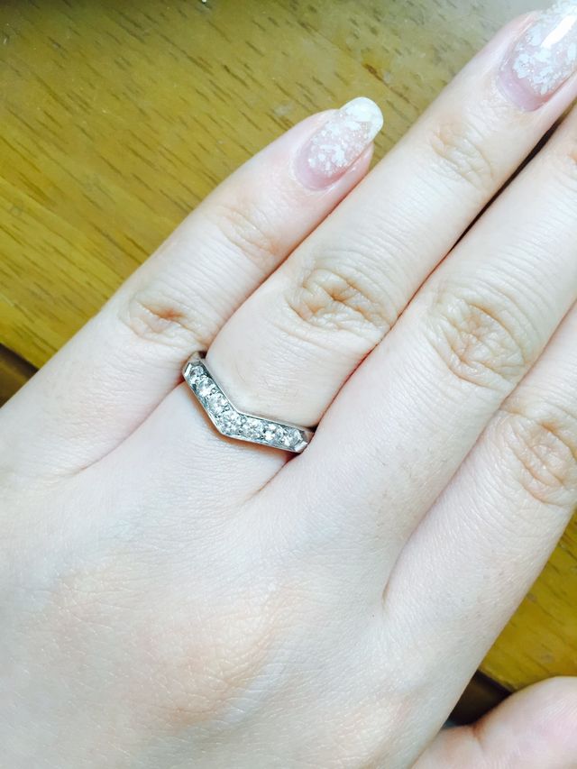 正面のVのラインがとても指を綺麗に見せると販売員さんの接客時の一言が決め手となり、購入に至りました。