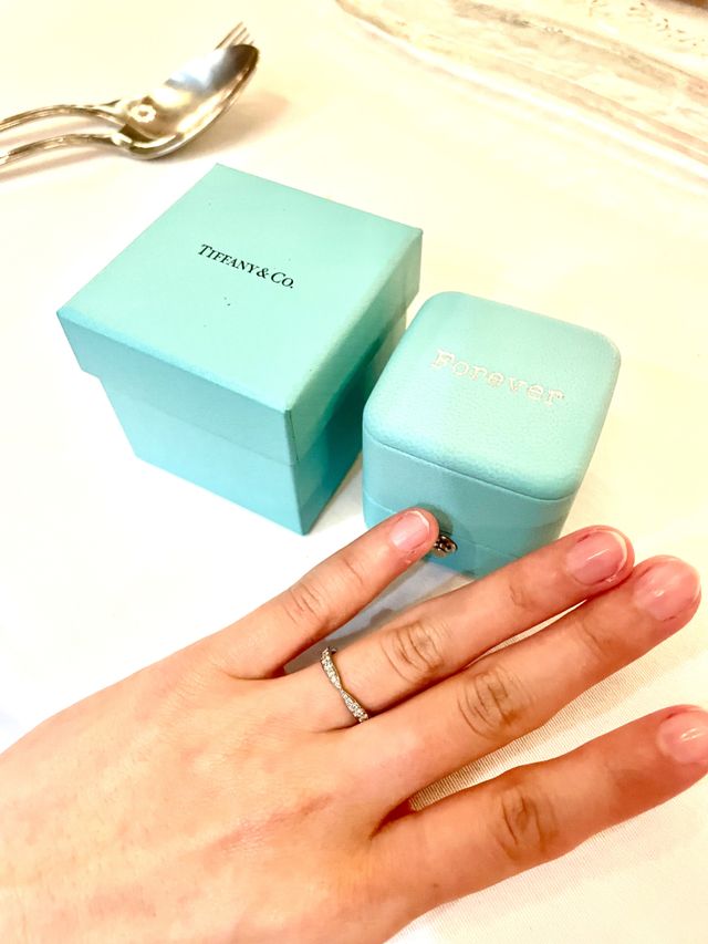 婚約指輪は、いかにも婚約指輪!とゆう一粒ダイヤではなく、普段使いできるものを探していました。こちらは形がとても気に入り、指が綺麗に見えるのでとても気に