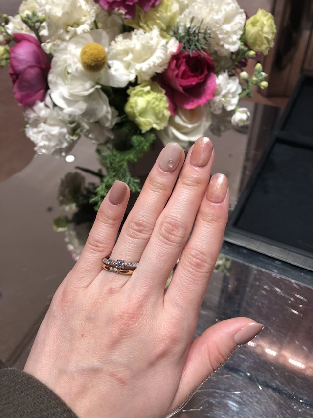 ピンクゴールドとプラチナの重ね付けが可愛いと思いました。イエローゴールドもありましたが、ティファニーのピンクゴールドは柔らかくて歳を重ねても似合いそうだと思いました。手が小さいので、華奢なデザインの方が似合うことがわかりました。