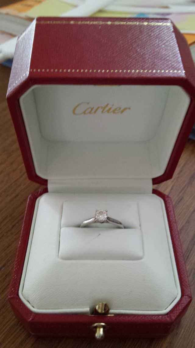 昔から婚約指輪をもらうならカルティエがいいという憧れがありました。シンプルで美しい一粒ダイヤのソリティアは女性にの憧れです。そのダイヤを自分の好みにカットできるというところにさらに惹かれこちらのリングにしました。