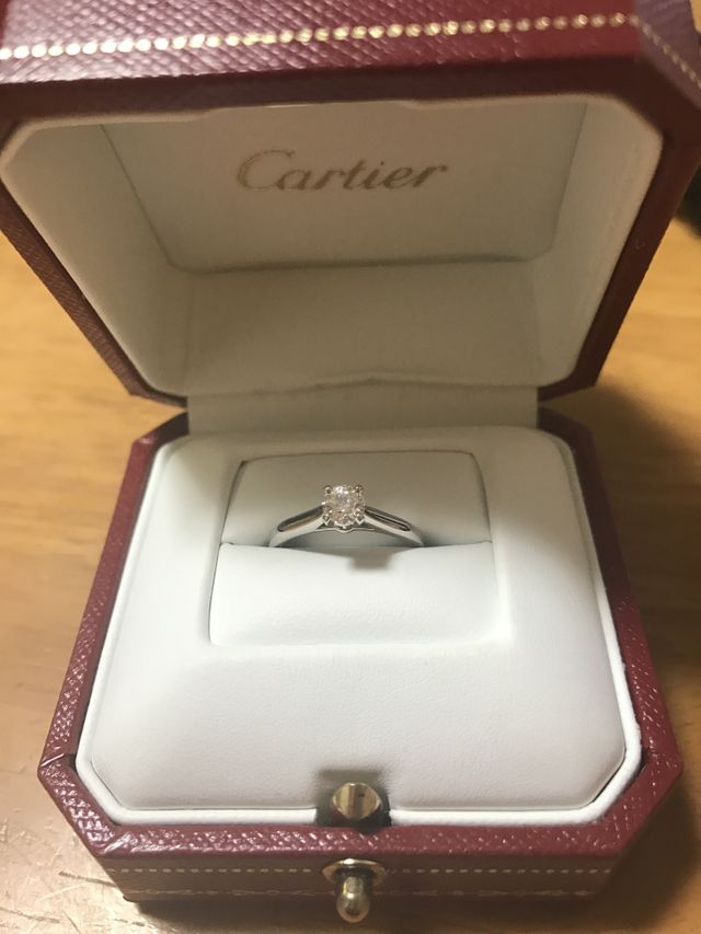 一粒ダイヤの王道のデザインであり、カルティエへの憧れが決め手でした。高い買い物なので沢山のお店を見ましたが、結局一番最初に見たカルティエのソリテールが最も心惹かれるものがあり、決定した。また、店員さんの対応も非常に丁寧で信頼できるところもよかった。