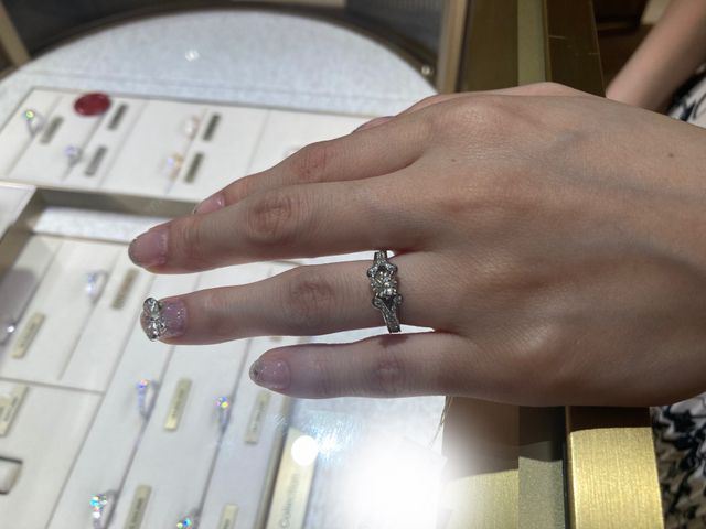 デザインがキュートで一度着用をしてみたかったです。カルティエは元々好きなブランドだったので、婚約指輪も気になっていました。とても可愛らしいのですが、わたしの指には合わず、着用時少し指がむっちりに見えると思いました。