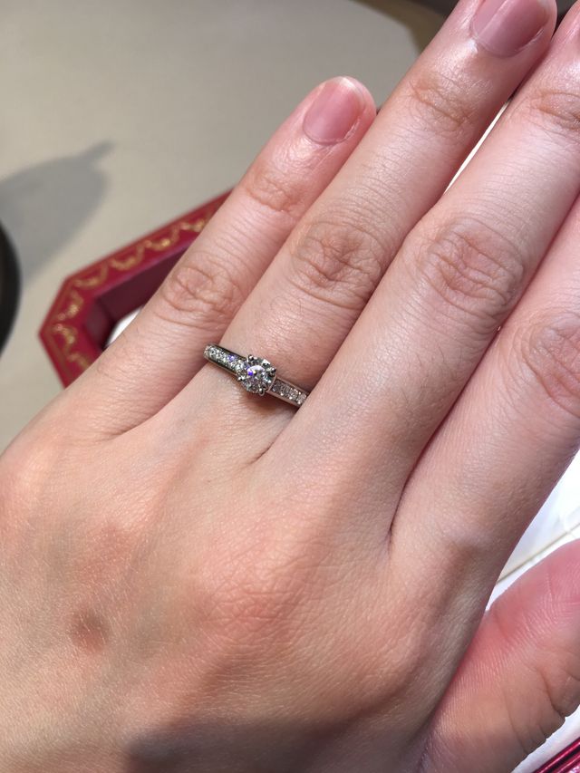 彼も付けた瞬間に指が綺麗に見えるねと言ってくれる素敵な指輪でした。