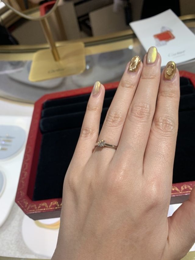 アームの太さがあるもので、カジュアルファッションにも違和感が無いものも探していました。ザ、婚約指輪なデザインでシンプルなのに洗練されていて、ため息が漏れました。ダイヤモンドのカラットによる雰囲気の違いもあって、本当に可愛いかったです。