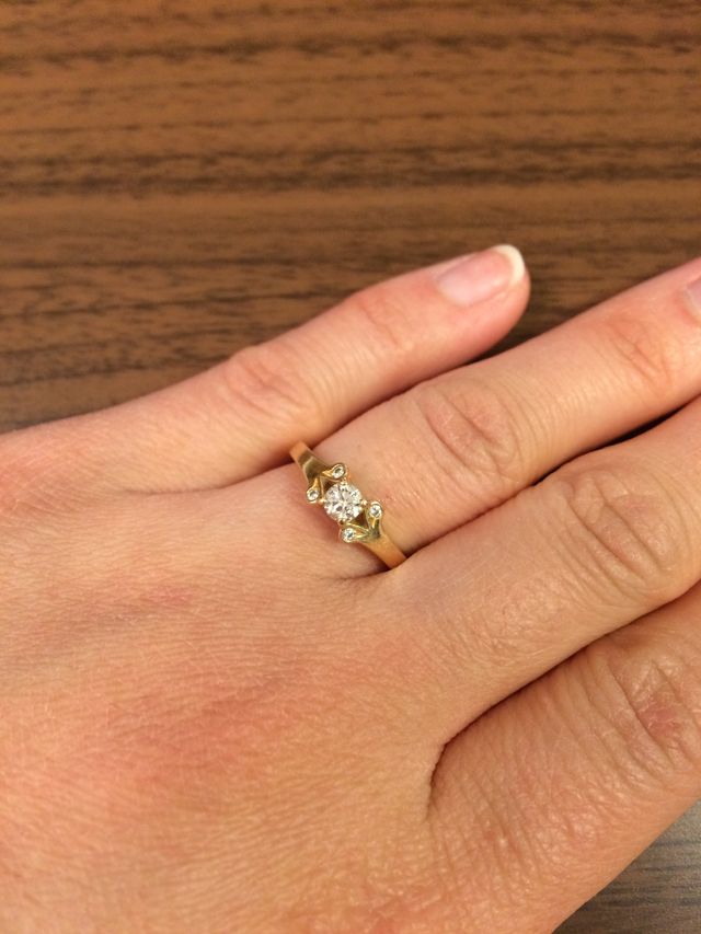 立て爪の指輪ではないのも婚約指輪でもデイリーユーズ出来て良いと思いました。