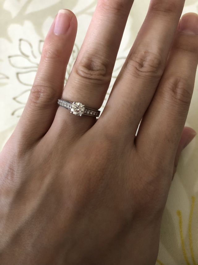 たくさんの店舗の指輪を見ましたが、カルティエが一番綺麗なデザインで、輝きが良かったです!一つづけでも素晴らしい輝きですが、結婚指輪と重ね付けしたくて合わせながらこのデザインにしました!付け心地もよくとても気に入っています!