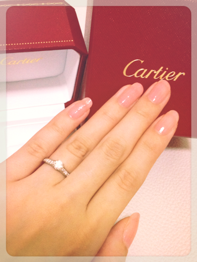 一粒ダイヤプラスパヴェのリングにしたいと決めていたので、各ブランドで比較しましたが、カルティエはセミオーダーメイドできる点が良かったです。自分の好みのダイヤを選び、他の人にはめられることなく、自分のためのリングというのが特別感がありました。