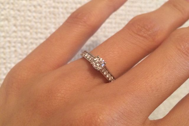 中央とダイヤとその横にリングに添ってダイヤが置かれていて、シンプルだけどとても上品なデザインに惹かれました。