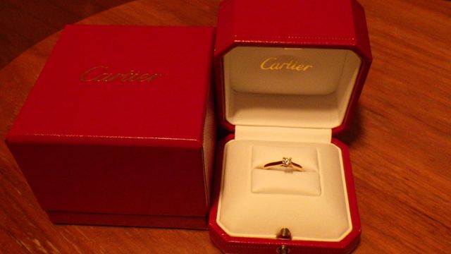 「婚約指輪はカルティエ!」と決めていたので、今の旦那にお願いして一緒に買いに行きました。