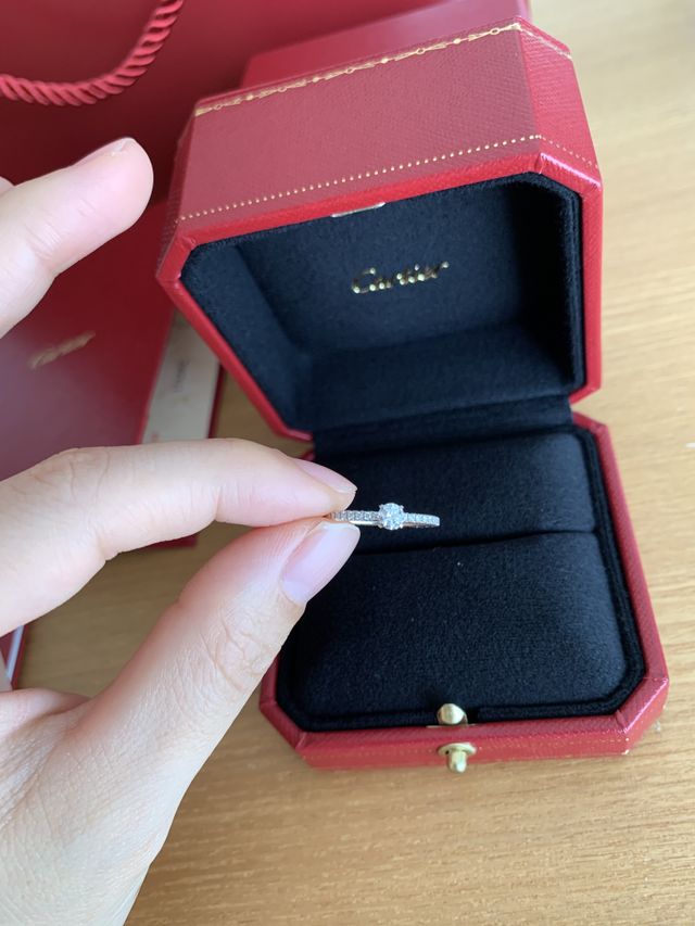 購入した際は綺麗にラッピングしてもらい、特徴的な赤い箱にテンションがあがりました。また写真も一緒に撮っていただけたので良い記念になりました。クリスマス前でしたが、予約しなくてもゆっくり見ることができました。ダイアモンドのクオリティ、色、カラット数が違うものをいくつも見比べることができたので良かったです。