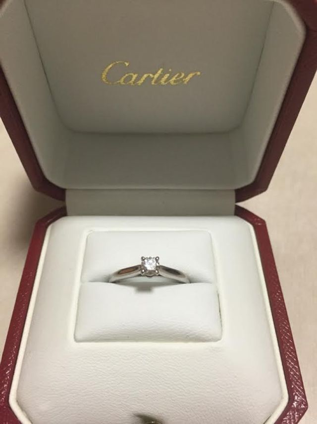 主人の中で、婚約指輪と言えばカルティエと言うイメージがあったようで、迷わずカルティエへ行って、1件目で決定したようです(^^)結婚指輪を別で購入する予定だったため、予算の範囲内でシンプルなものを選んでくれたそうです。