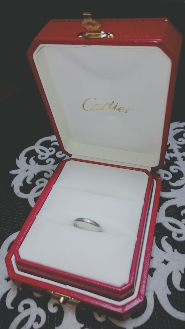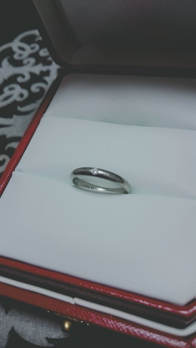 当初はプラチナだけのもの、と考えていましたがカルティエの美しいダイヤモンドを見ていたら欲しくなってしまい、一粒小さいのを入れました
