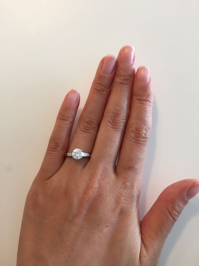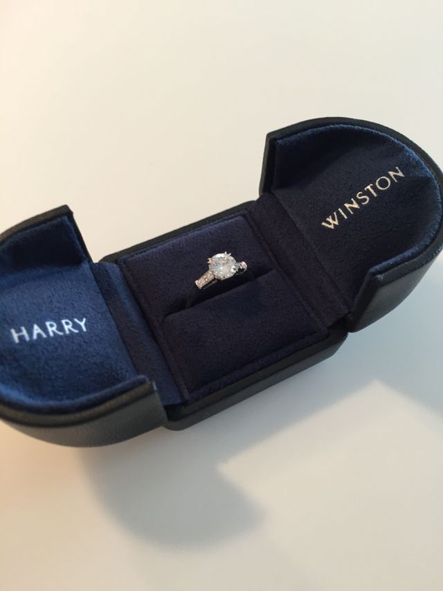 婚約指輪はプロポーズの時に彼がすでに購入してくれていたので、自分で選んだものではありませんが、ハリーウィンストンの指輪はいつかはつけてみたいと思っていたので、とても嬉しかったです。この指輪は中央に大きなダイヤモンドがあり、両サイドに2粒ずつダイヤモンドがあしらわれています。