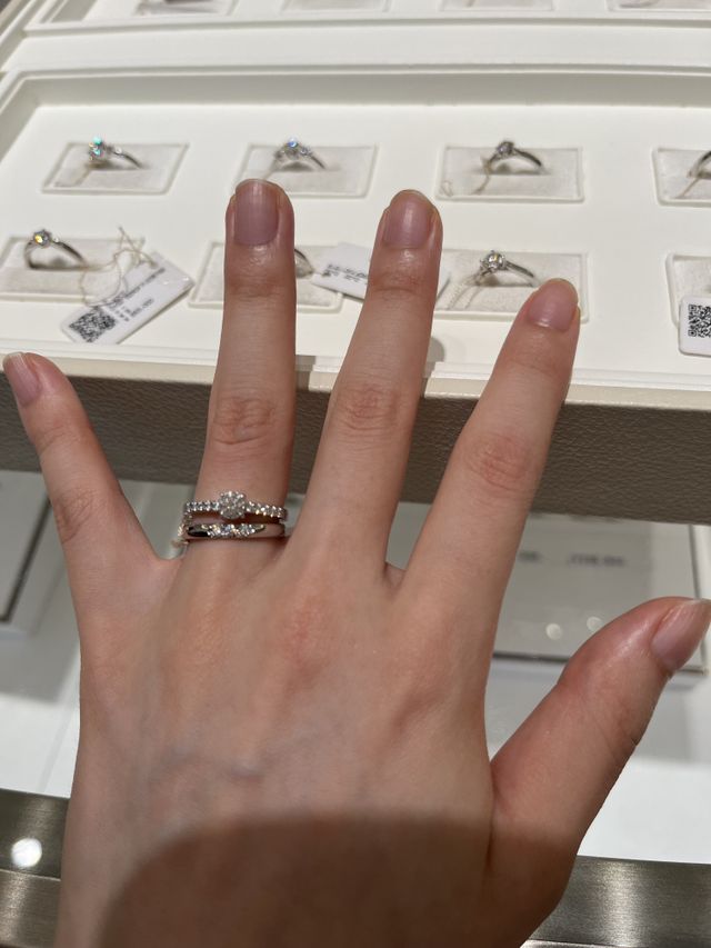 キラキラした品質の高いダイヤモンドを探していました。肌馴染みしやすく、着け心地の良いデザインでとても素敵でした。たくさん可愛いリングを色んな店舗で見させていただきましたが、さらっとおしゃれに、しっかりダイヤもついていて良かったです。