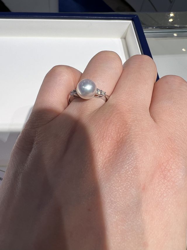 大き過ぎず小さ過ぎず、リング幅にもちょうど良いボリュームのあるとても綺麗な一粒パールでした。