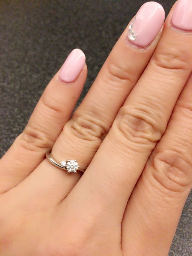 手が大きく指もゴツゴツと太めのためコンプレックスがあったのですが、指輪の形でかなり変わるものですよ。とアドバイスいただき、この指輪に決定しました。