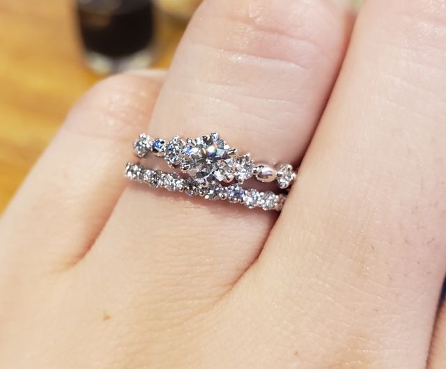2つの結婚指輪、婚約指輪で35万円の予算で指輪を探していました。ダイヤの大きさや質もとても素晴らしく、指輪のデザインもとても綺麗でした。宝寿堂さんはスタッフさんも親身になって一緒に考えて下さりました。