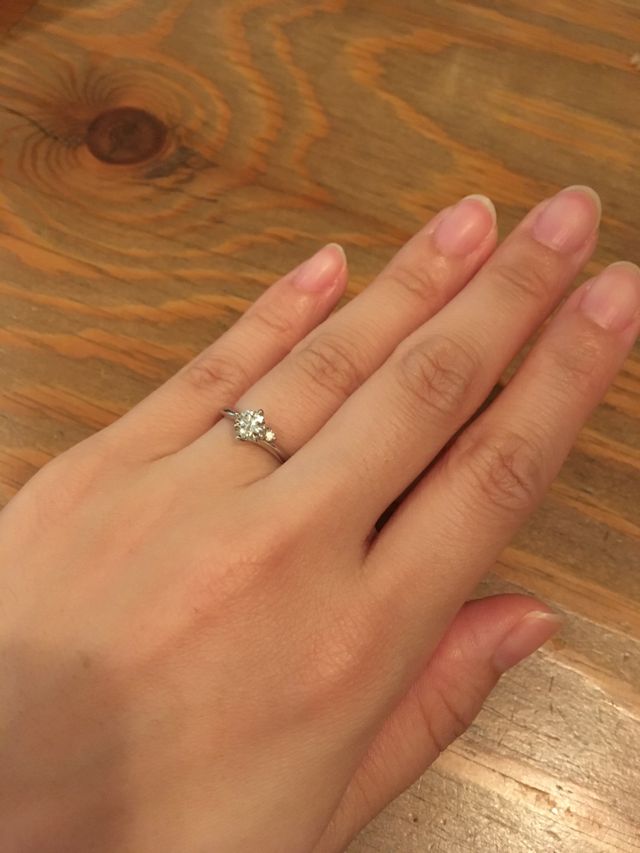 石が大き過ぎても私の手には似合わないということでしたが、歳を取ってからは大きめが良くなるから!とのことで、予定よりも大きい0.4ctのダイヤモンドにしました。