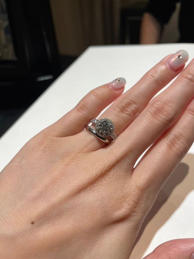 デザイン性がとても高く、真ん中のダイヤを支えているデザインが特徴的で素敵でした。指輪の素材はプラチナです。パヴェタイプなのでボリュームがあり華やかさがとてもありました。ダイヤの品質もこだわられていました。