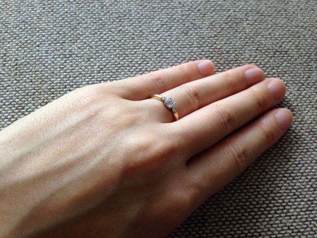 まず、デザインが私好みで素敵です!ダイヤとリングの接続部分が、丸みを帯すぎておらず、甘くなりすぎません。