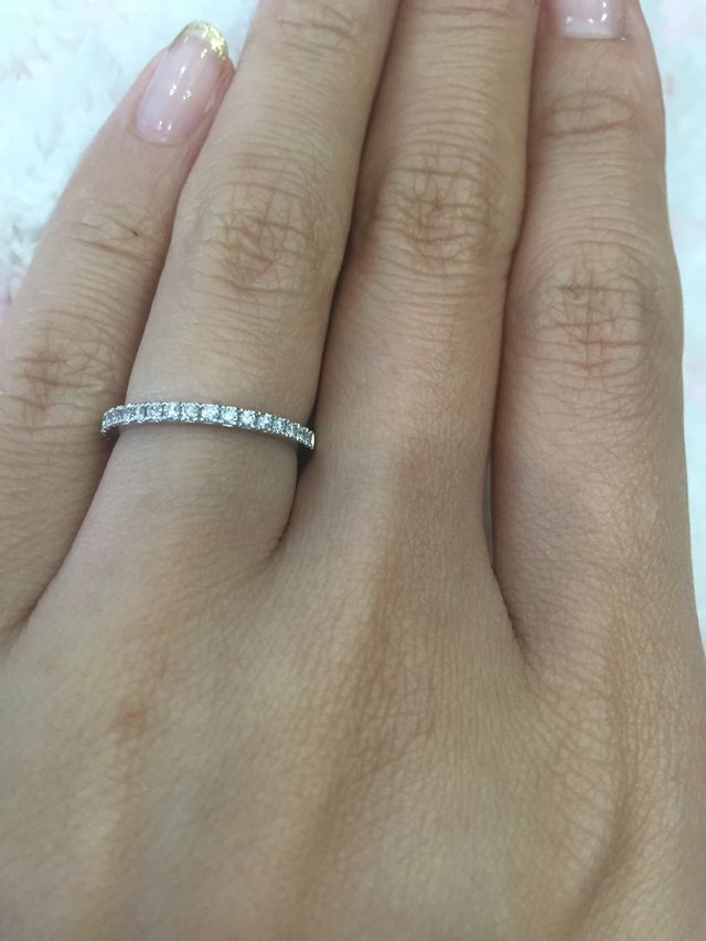 もともとデザインはシンプルなハーフエタニティにしようと思っていました。華奢な形で普段つけていても嫌味な感じがしないシンプルさに惹かれて購入しました。また、他のブランドに比べてダイヤの質がいいように感じました。