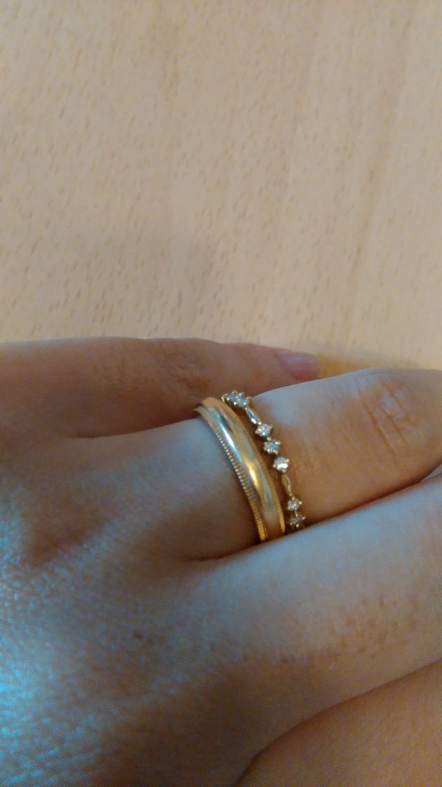 マリッジリングと重ねづけしたかったのでダイヤのデザインを探していて、色々つけてみると、これがとても