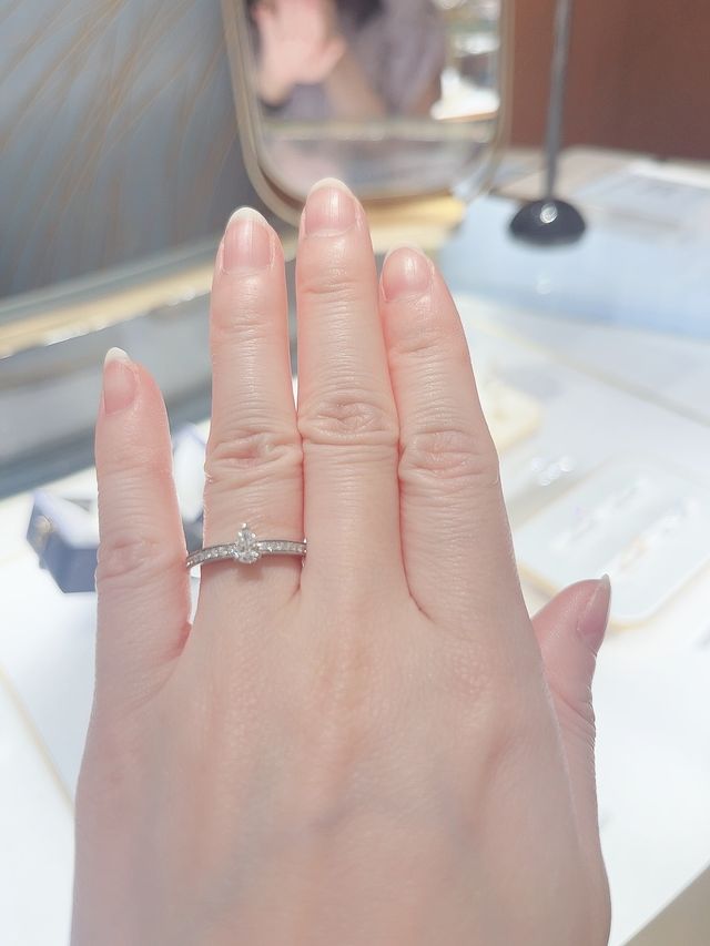 普段から彼がつけてほしいと言ってくれたので日常使いできるエンゲージリングを探していました。こちらのデザインはハーフエタニティでペアシェイプのダイヤがとても可憐で素敵なデザインですが、ファッション感もあり使いやすく感じました!ショーメのハーフエタニティはハーフとは言い難いほどダイヤが入っておりどこからみてもキラキラしていて気に入っています♡