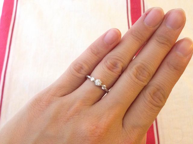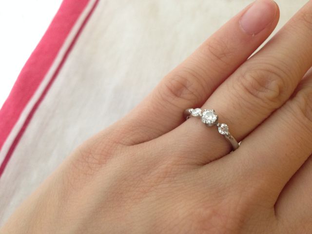 真ん中に大きめのダイヤモンドがあり、その両端に小さなダイヤモンドがあるタイプの指輪が欲しかったので、この指輪を見た瞬間に「これが欲しい!」と思いました。