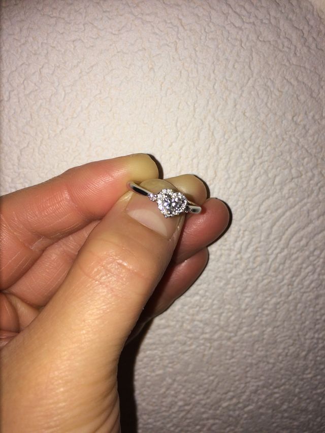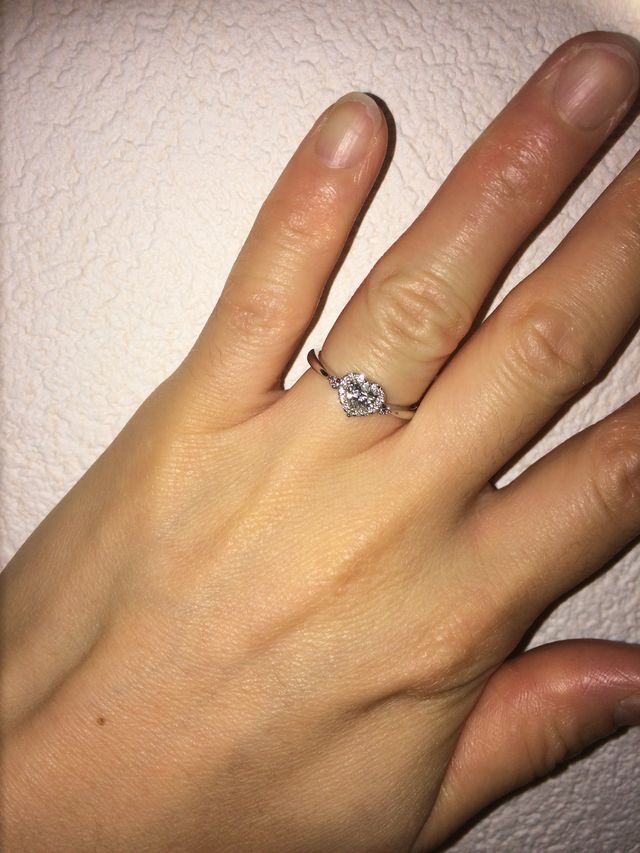 大好きなアニメで、男性が女性のヒロインへハートシェイプの婚約指輪を贈っており、それに憧れて、ハートシェイプを探しました。一粒石の周りをメレダイヤで取り囲んでいるため、大きく見えて輝きも倍増するので、なかなかリッチです。