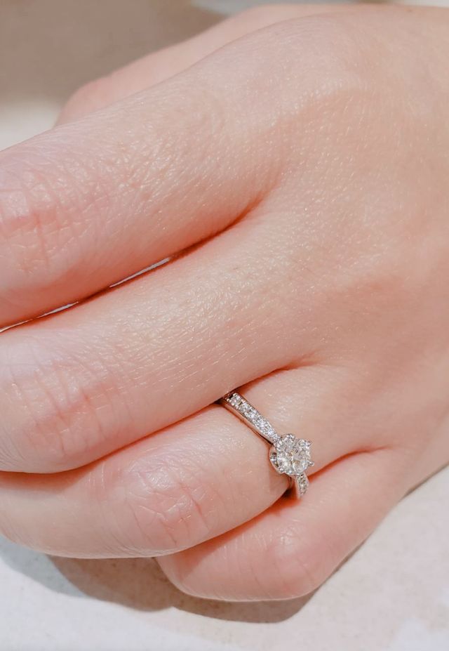 ダイヤの品質もとても良いのに(店頭だけでなく、日常生活でも本当によく輝いています)ハイブランドよりお値段が抑えられていて、とてもよいお買い物ができると思います。