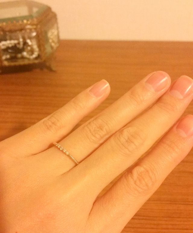 婚約指輪として購入致しました。まだ結婚指輪は購入していなかったのですが、ピンクゴールドのものにしようと決めていたので、それにあったようなものを探していました。