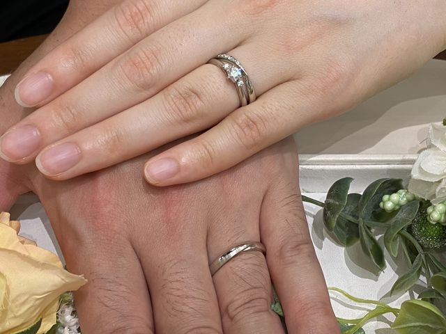 豊富なデザインをはじめ、指を通した時の着けやすさ、サイズも細かくあり、自分たちに合った指輪だと思ったからです。また、50年の保証付きというのも魅力でした。実際に色々な種類を付けてみて「これだ!」と思いました。