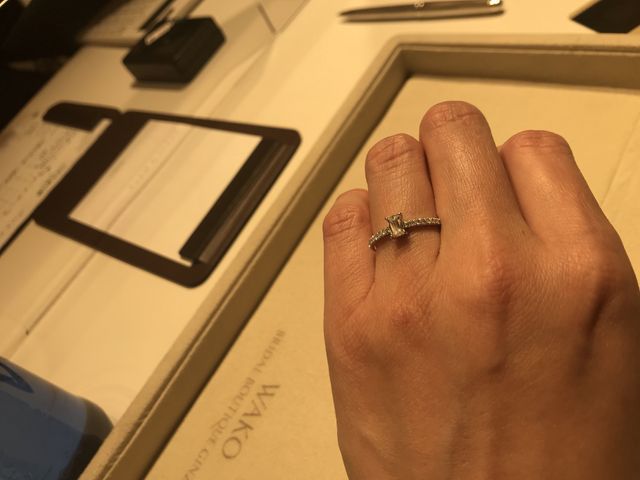 当初は海外ブランドの婚約指輪を検討していて、いくつものお店を見に行きましたが価格の割にはダイヤが小さい等、なかなか決められずにいました。そんな中、和光のブライダルリングの専門ブティックがあることを知り、まず1人で見に行きました。私好みのシンプルなリングが並んでいて、さらにダイヤモンドの輝きが他の店とは違う!と感じました。私も彼も若くはないので、落ち着いた伝統ある和光のブライダルリングに決めました。