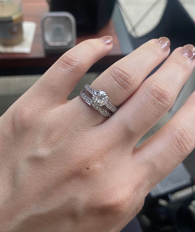 婚約指輪は側面にもダイヤがあしらわれており、想像以上にキラキラしていました。