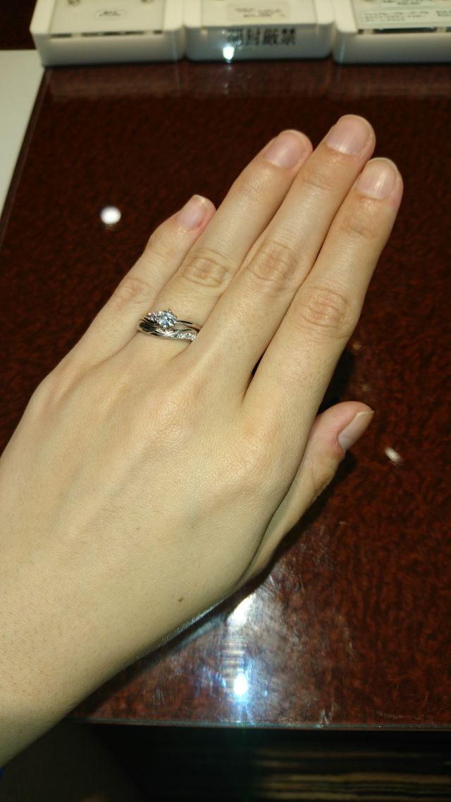 フルオーダーメイドで作っても婚約指輪と結婚指輪を合わせられるとアドバイス頂いたためセットリングを試着しました。結婚指輪にイニシャルハートがありオーダーメイドの指輪にはイニシャルハートを手のひらの方にいれました。