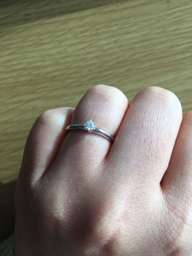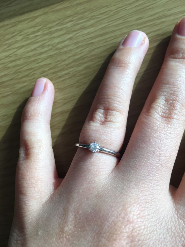 彼(現在の主人)が一人で購入を決めました。シンプルなデザインで、小ぶりなダイヤモンドだから普段も気兼ねなく着けられるようにとのことです。使用してあるダイヤモンドの透明度も最高クラスだったことも購入の決め手になったようです。